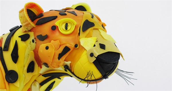 法国艺术家用海洋垃圾打造野生动物雕塑